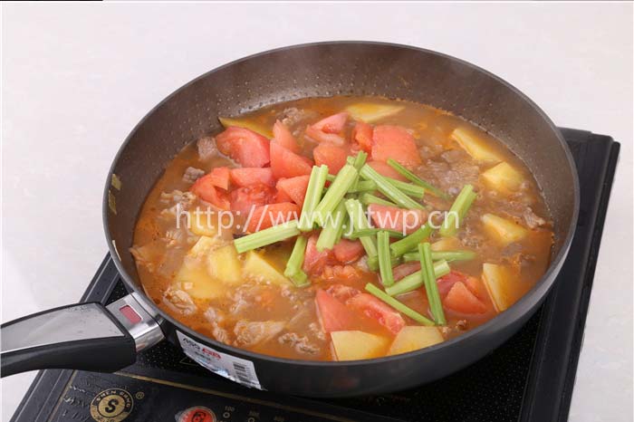 5.最后加入芹菜、西紅柿、金鑼高湯,煮沸后小火燜煮5-10分鐘即可。